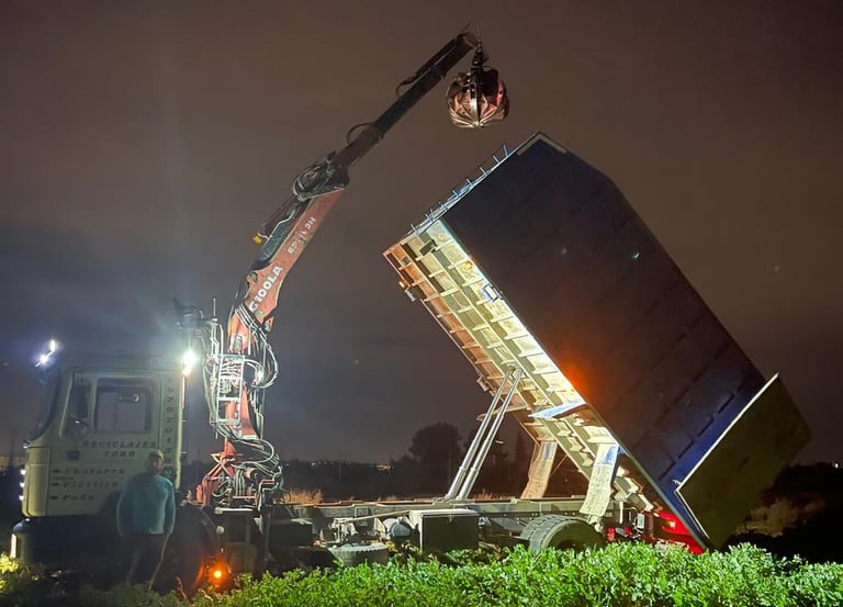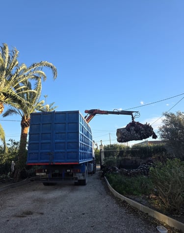 Recogida de podas con camión pulpo de 40m3 en Murcia y Alicante.